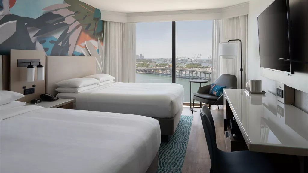 Located at 1633 North Bayshore Drive, the 31-story hotel has been a part of Miami's tourism history since 1982. One of the most notable changes is its 607 rooms and suites, completely redesigned with an aesthetic inspired by the coastal environment. Many feature private balconies, and all offer views of Biscayne Bay or the skyline, reinforcing the connection to the destination from the moment guests arrive.