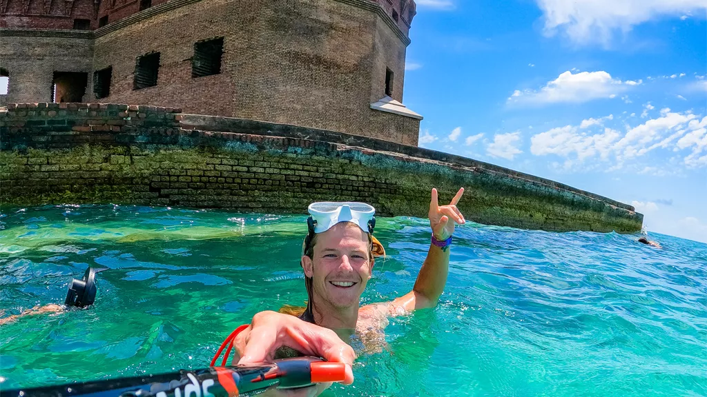 For campers at the fort on Garden Key, extraordinary snorkeling is available along the exterior of the moat wall, where an octopus scouring for shellfish can be a common sight. The National Park Service recommends daytime diving along the wall to capture underwater vistas, and then snorkel again at night for more intimate discoveries.